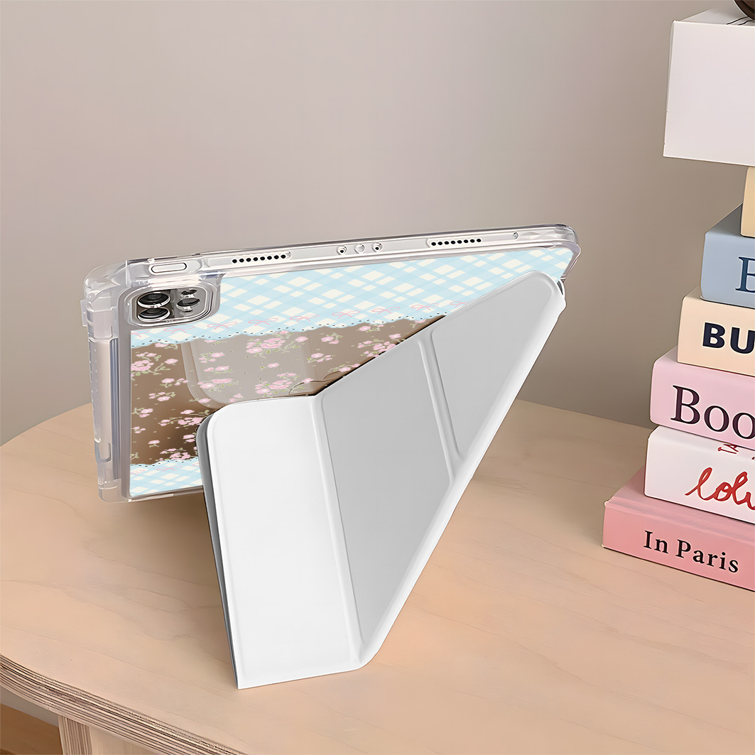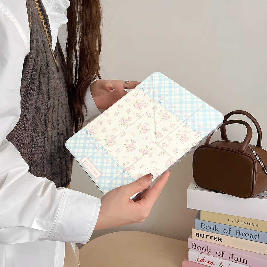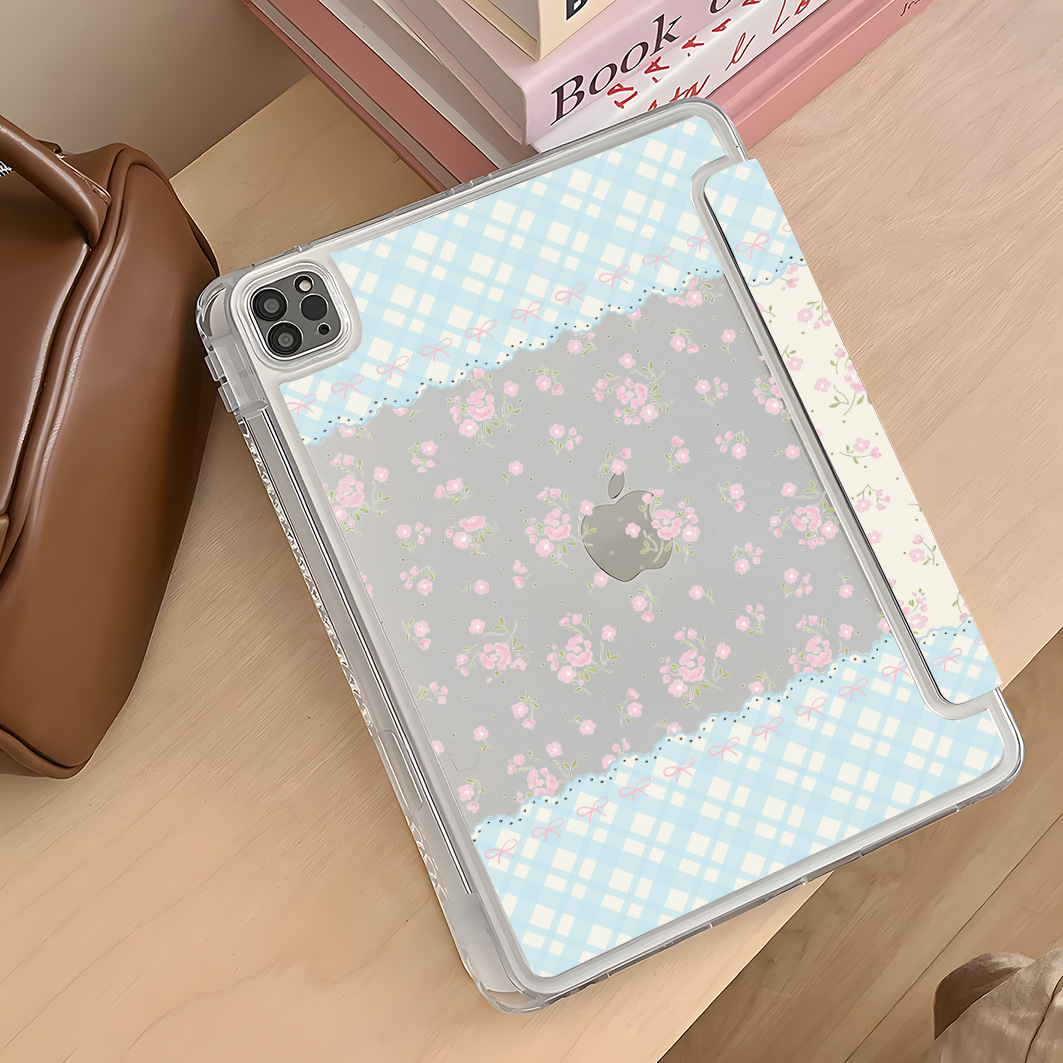 플라워 블루체크 아이패드 케이스