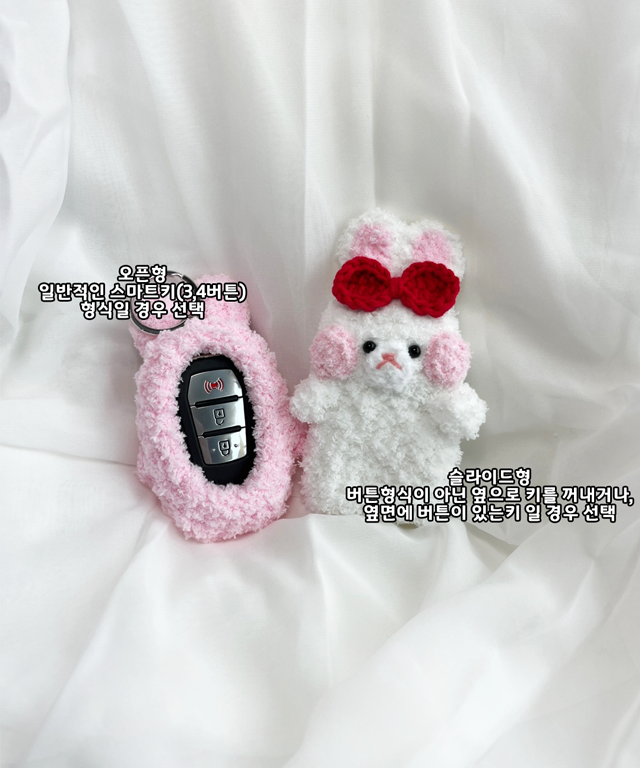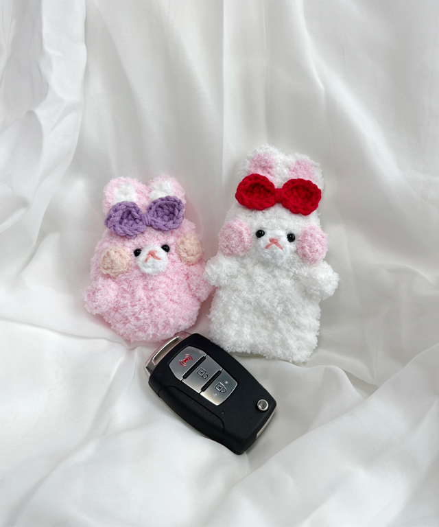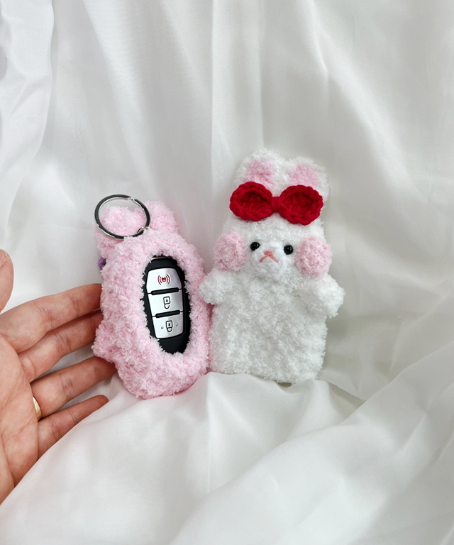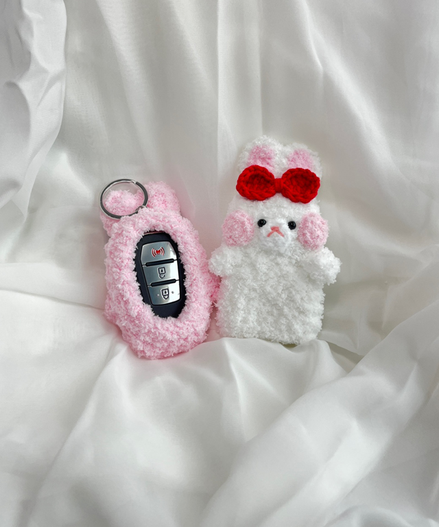 '귀여운 둔둔 쵸미가 내 차키를 보호해요!'둥글둥글한 귀여운 토끼 쵸미가 폭신한 품으로 차키를 감싸줍니다! 보는 순간 기분까지 좋아지는 핸드메이드 감성 케이스예요.