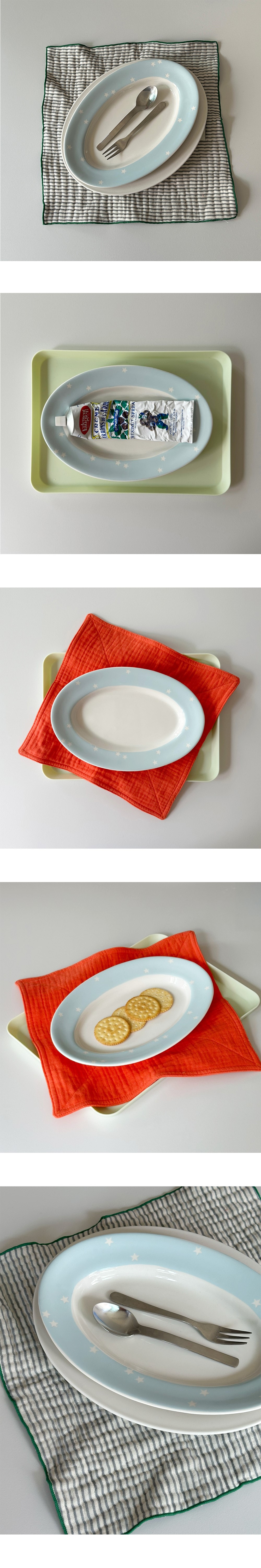 스카이 블루 색상에 별이 새겨진 귀여운 플레이트입니다.