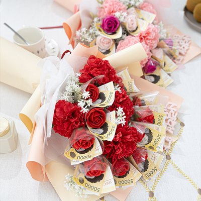 카네이션 조화 꽃다발 비누장미 용돈 52cm 2컬러 어버이날