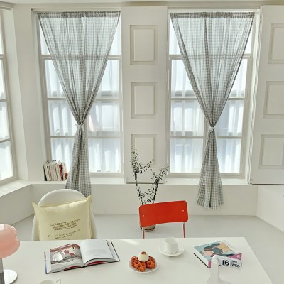 인디고 시어 코튼 체크 커튼