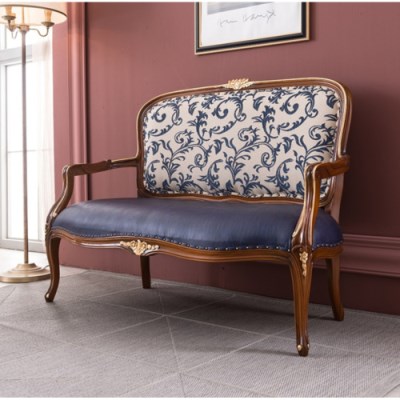 (한정품)로열문양 엔틱 네이비 2인 원목 소파 / 원룸 패브릭 북유럽