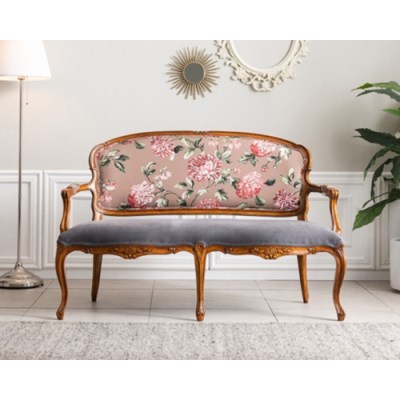 오리엔탈 엔틱 꽃장식 패브릭 2인용 원목 소파 / 거실 아파트 카페