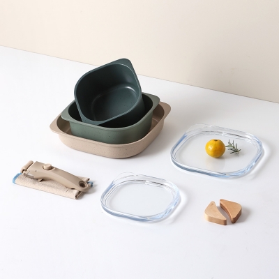구성품 : 16cm 사각냄비 + 20cm 사각전골 + 25cm 사각프라이팬 + 멀티핸들 + 우드그립 + 프로텍터