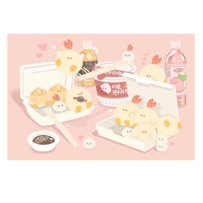 병아리만두 삠 카드 엽서 - 야식 세트