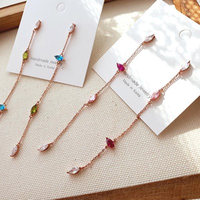 종류 : 겨울 정장 실버 큐빅 핑크 드롭 이어링 귀걸이