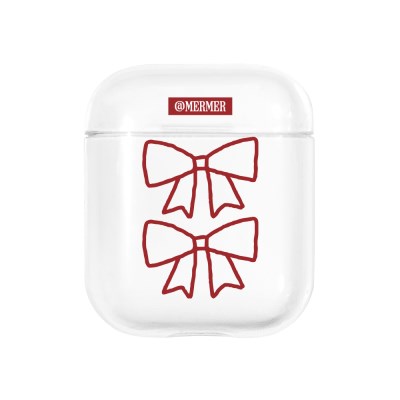 더블 리본 페인팅-레드(에어팟-클리어)
