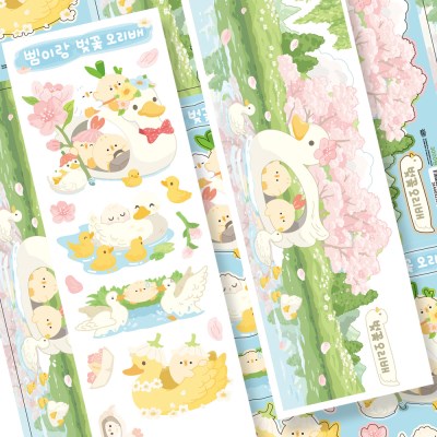 삠이와 벚꽃 오리배 스티커 - 2종 세트