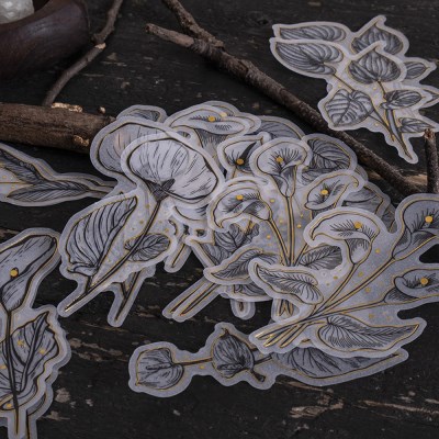 흑백 빈티지 금박 꽃 플라워 황산지 다꾸 스티커