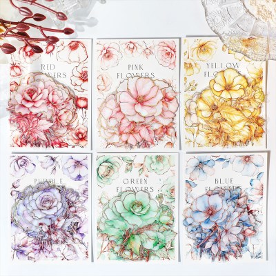 빈티지 금박 수채화 플라워 꽃잎 다꾸 스티커 6종