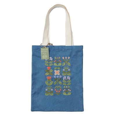 블루벨 (자수) - 앞면의 섬세한 자수(블루벨)와 뒷면의 감각적인 프린팅이 조화를 이루는 디자인 - 330 x 413mm - 지속가능한 리사이클 코튼 소재 - 오픈형 타입(Open Top Style) - Embroidery/ Printing - 내부포켓 지퍼(Inner Zip Pocket)