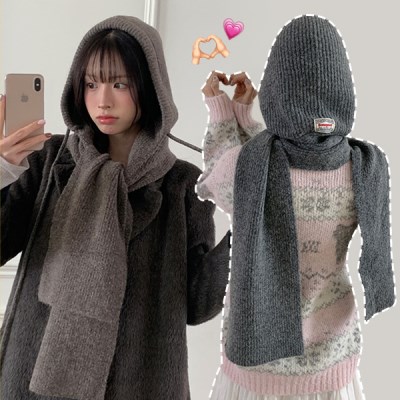 [2in1] 피터 울 니트 스트링 후드 바라클라바 머플러 (25HA025)