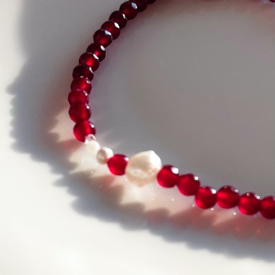 소재 : 원석(적옥,담수진주,인도마노), 써지컬스틸, 우레탄줄