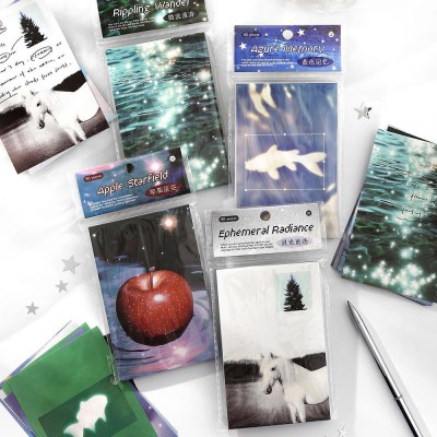 몽환적이고 예쁘네요! 종이가 얇고, 뒤에 있는 것이 아주 살짝 비치는 재질이에요. 덤도 받아서 매우 만족합니다 ㅎㅎ |