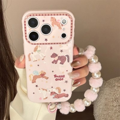 아이폰17 핑크 유니콘 진주 퍼 참 스트랩 소프트 케이스
