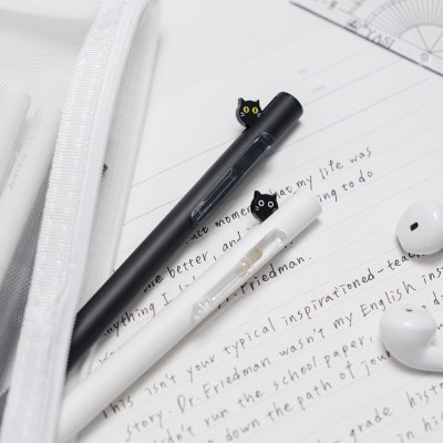 펜을 사용하지 않을때는 검정색의 시크함이, 펜을 사용할 때는 고양이가 나타나 귀엽습니다! 고양이를 좋아하는 조카들을 위해 구입했습니다. 키우지는 못해도 필통속에 ㅋㅋ