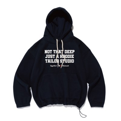 [기모/NO기모] 위트 슬로건 스트링 후드티셔츠 (네이비)