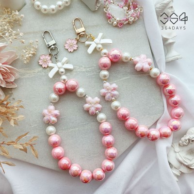 품명 및 모델명 : 오로라AB 핑크 벚꽃키링 구슬 비즈키링 롱스트랩 폰스트랩 백참