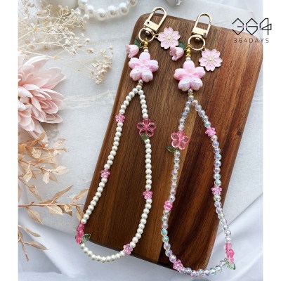 품명 및 모델명 : 핑크 벚꽃키링 오로라구슬 진주 비즈키링 가방스트랩 폰스트랩 백참