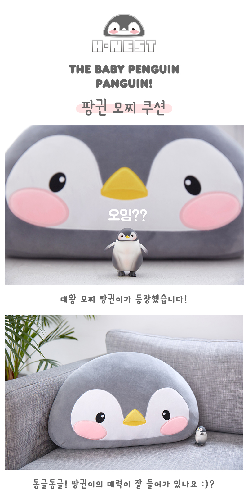 말랑말랑한 귀여움으로 무장한 아기펭귄 팡귄!의 모찌쿠션입니다.