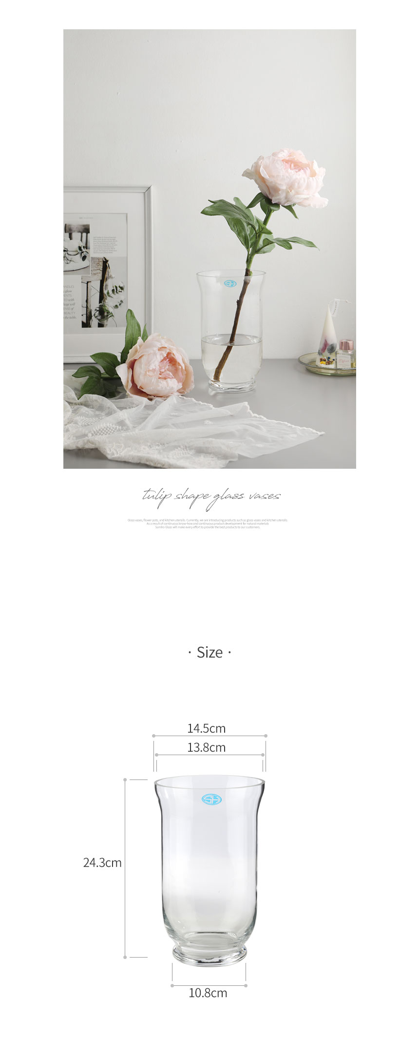 ![]() 튤립쉐잎의 우아한 유리화병입니다. 넓직한 입구로 다발형태의 꽃이나 한송이꽃 등 다양하게 활용할수있는 인테리어 유리화병. - Detail info - 모델명 : SH14524 재질 : 무착색유리제 사이즈 : 외경14.5 * 내경13.8 * 높이24.3 * 밑지름10.8cm 수입원 : (주)삼호유리 *연출용 소품은 판매용이 아닙니다. *모니터 해상도에따라 색상이 다르게 보일수 있습니다. 테이블 센터피스,선반장식 등 다양하게 활용해보세요. 생화뿐만 아니라 조화,잎소재등 으로 집안을 화사하게 연출 할 수 있습니다. ![]()
