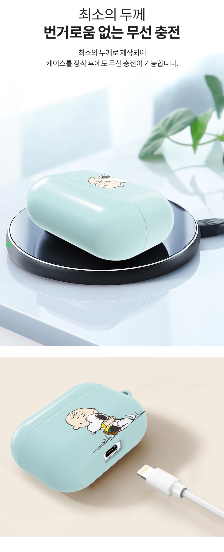 보호케이스가 끼워진 상태에서 에어팟프로의 유/무선충전을 편리하게 사용 가능 합니다.