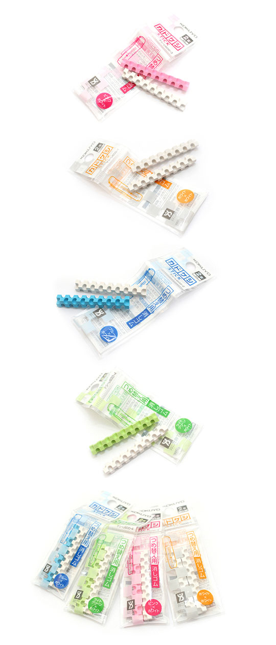 코쿠요 카도케시 스틱 트위스트 지우개 리필 (4컬러) 코쿠요 카도케시 스틱 트위스트 지우개의 리필 지우개. 2002년 디자인 어워드를 수상한 녀석이다. 일반 사각 지우개는 8개의 모서리 뿐이지만, 이 새로운 지우개는 무려 28개의 모서리를 가지고 있다! 천재적인 이 지우개는 뭉툭한 지우개를 허락하지 않는다. :) 이 최신 버전의 카도케시 지우개는 미니 사이즈로 돌릴 수 있는 트위스트 지우개이다. 블루, 라임그린, 핑크, 화이트의 상큼한 컬러가 있으며, 평~생 사용할 수 있도록 리필 지우개도 판매된다. |