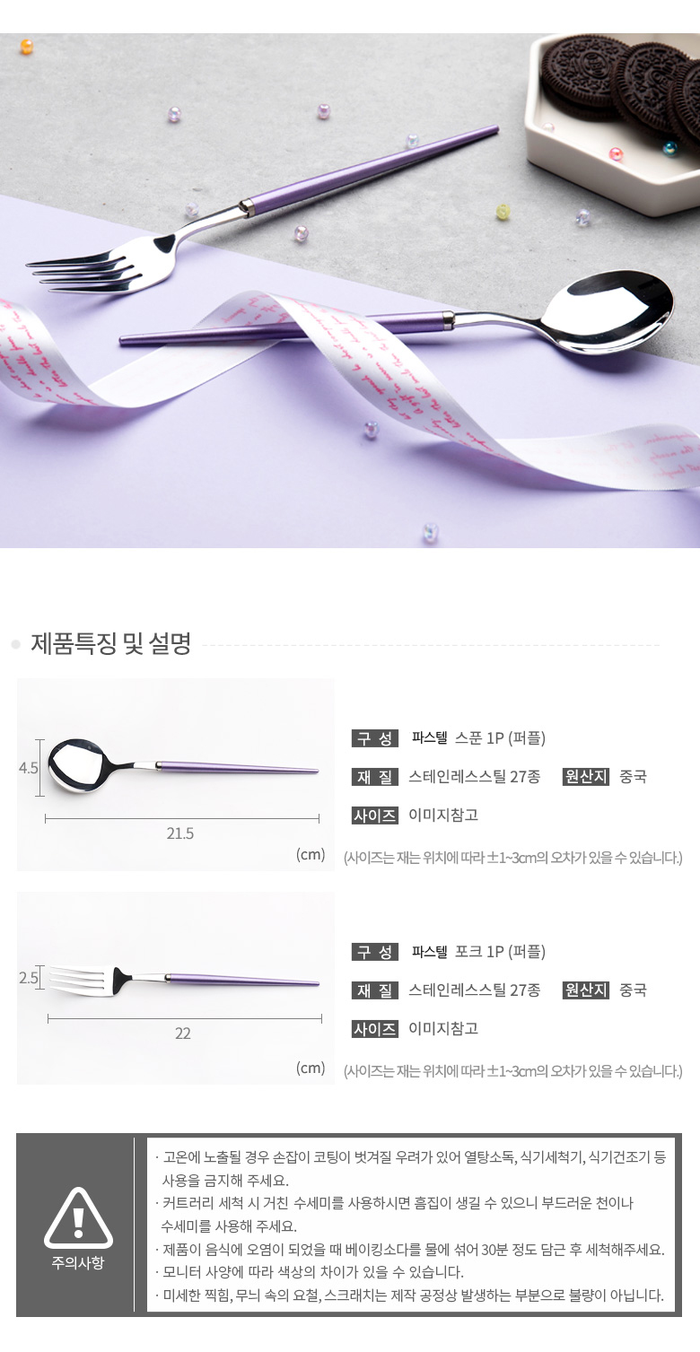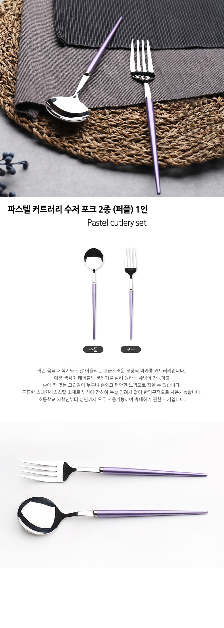 파스텔 커트러리 수저 포크 2종 (퍼플) 1인