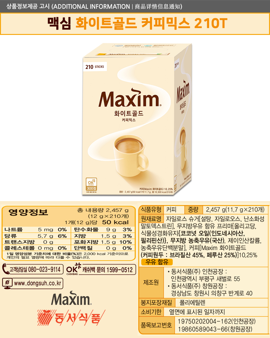 우유 맛을 선호하는 분들과 맥심 커피 본연의 맛과 향을 풍부하게 느끼고 싶은 분들의 마음을 모두 사로잡을 화이트 골드 커피믹스예요.