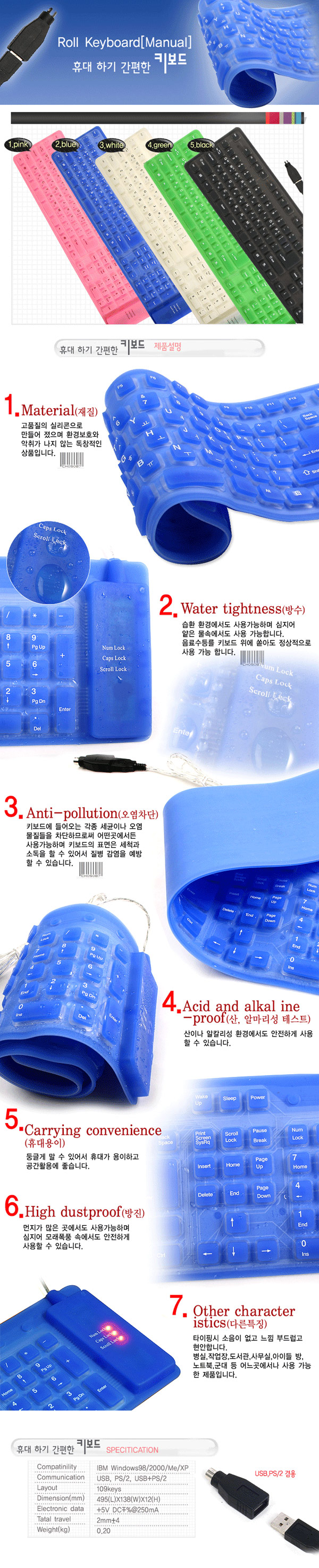 | ★이젠 키보드도 Take Out시대~~ 어디서나 사용할수 있는 노트북의 장점이 있지만, 그래도 편하게 키보드로 작업했으면 하는 생각이 절로~나는것이 현실~! 그렇다고 무거운 키보드를 들고 다닐순 없는노릇 --;; 그래서 텐바이텐이 소개하는 간편한 키보드, ★고요속에서 집중하여 일을 하고싶으나, 머리가 깨질듯이 들려오는 다다다다다다닥,,,키보드 자판소리,,,, 이제는 조용함 속에서 일하실수 있습니다^^ ★가장 좋은점은?? 1. 타자 소리가 나지 않아 조용히 작업할수 있어 좋습니다. 2. 컴퓨터앞에서 커피를 마시며 일하다가 쏟아도 휴지로 쓱싹 닦아주기만 하면 됩니다^^ 3. 3단으로 접어서(혹은 동그랗게 둘둘 말아서) 가방에 쏙 넣을수 있어 이동이 편리합니다. 4. 습한 환경에서 사용하셔도 문제가 없습니다. ★닦을때는 어떻게?? 휴지에 물을 뭍혀 닦아주셔도 되며, 분무기로 분사하여 휴지로 닦으시면 됩니다. ★USB PS/2겸용입니다. ★주의점 -재질이 실리콘이므로, 처음 구매하여 받았을시 실리콘 냄새가 날수 있습니다. 약 3-4일정도 시간이 지나면 점차 약해집니다.(받으신후 발코니같은곳에 두시면 좋겠습니다) 냄새는 시간이 지날수록 없어집니다. -실리콘 자판으로 되어있다보니, 사용하시는데에 있어서 약간 적응기간이 필요합니다. - 컴퓨터를 전문적으로 사용하시는 분께는 적당하지 않습니다. ★키보드 키 설명 -wake up : 이 키를 사용하시면 대기화면으로 전환됩니다. -power : 이 키를 사용하시면 모든 컴퓨터 전원이 off됩니다. -한,영키 변환 : 오른쪽 Alt 키를 누르세요 -한자변환 : 오른쪽 ctrl키를 누르세요 ★컴퓨터 전원이 켜있을때 키보드를 교체하셨다면 다시 재부팅을 시키셔야 작동이 됩니다. |