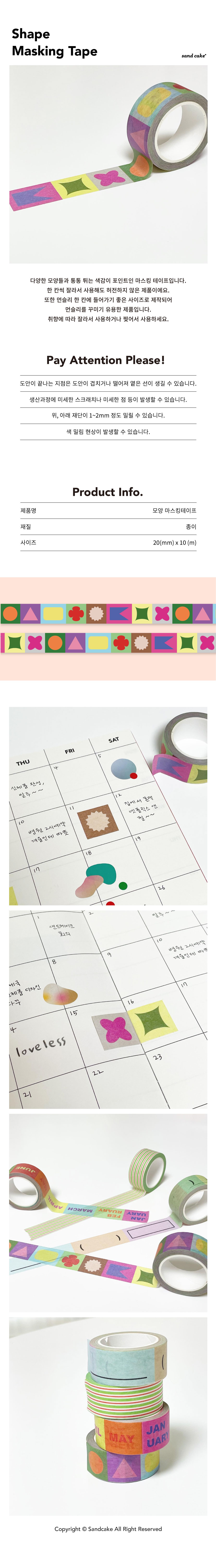 다양한 모양들과 통통 튀는 색감이 포인트인 마스킹 테이프입니다.