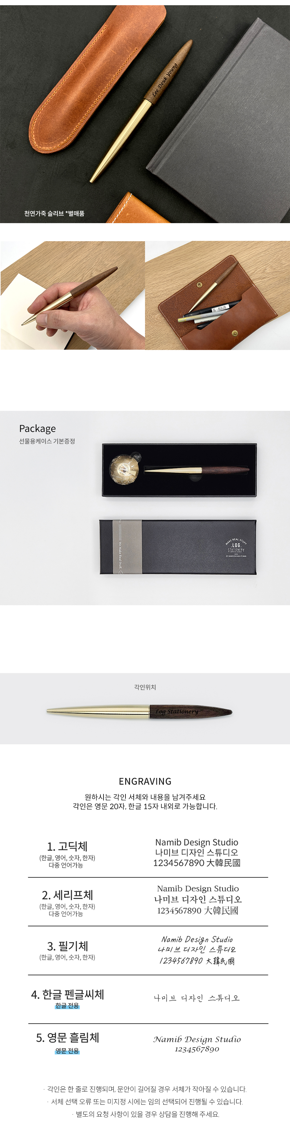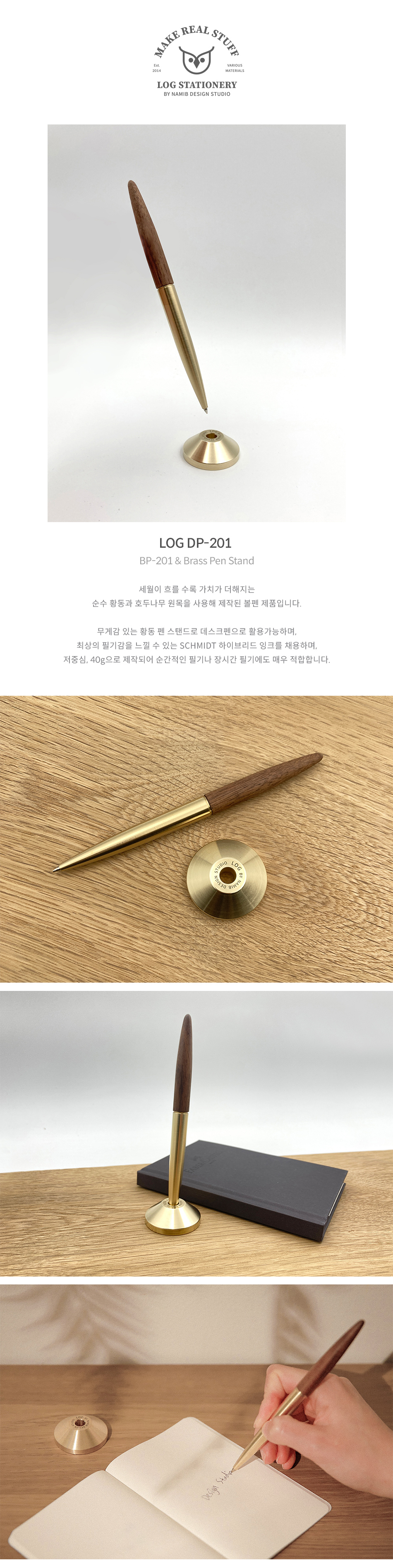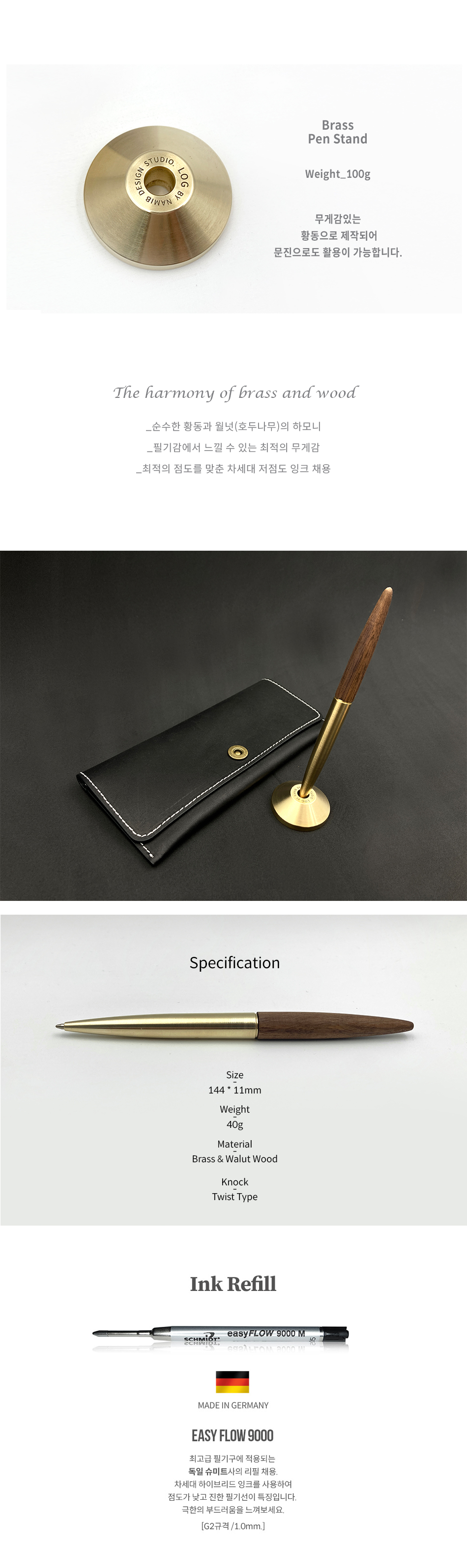 월넛우드와 황동볼펜. 황동스탠드로 펜을 거치할 수 있고 무게감이 있는 홀더는 문진으로도 사용이 가능합니다.