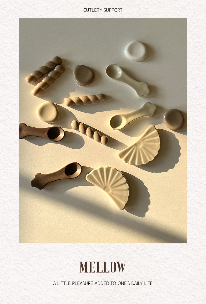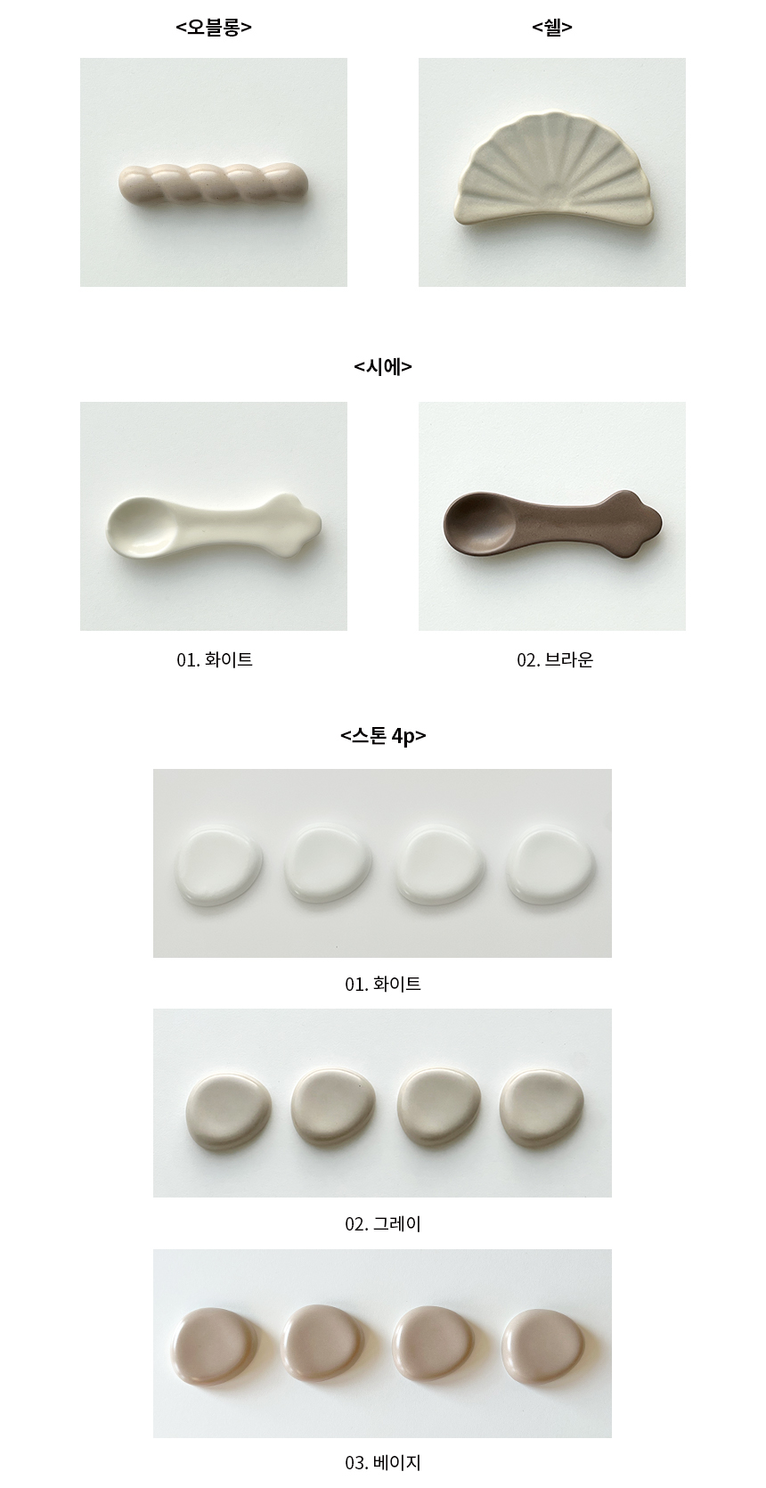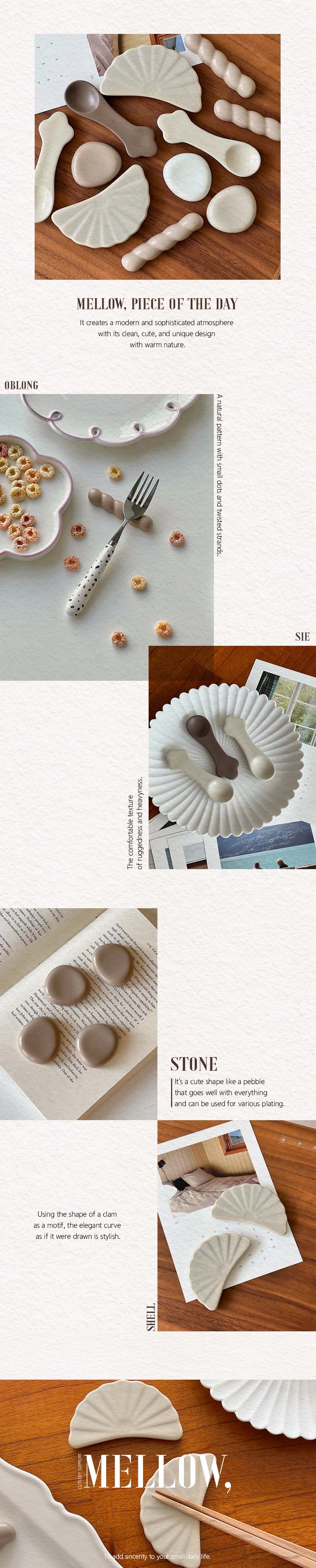 | - Product information - 페이퍼가든 멜로우 세라믹 수저받침을 소개합니다. 작은 변화로 일상에 소소한 즐거움을 줄 수 있는 자그맣고 사랑스러운 제품들입니다. 따뜻한 자연을 담아 정갈하면서도 몽글몽글 귀엽고 유니크한 디자인으로 모던하고 세련된 분위기를 연출합니다. 포근한 흙을 닮아 작은 점이 콕콕 박힌 내추럴한 패턴으로 가닥이 꼬여있는 "오블롱" 조개의 형태를 모티브하여 그린 듯이 유려한 곡선을 멋스럽게 살려낸 "쉘", 미니 수저처럼 귀여우면서도 유니크한 “시에” 몽글한 조약돌처럼 귀여운 쉐입으로 어디에나 무난하게 어울리고 여러 플레이팅에 활용 가능한 "스톤". *“스톤은” 4개 세트 제품입니다. 무심하게 툭 놓기만 해도 테이블 위에 정성을 더해주며 부드럽고 따뜻한 식사 분위기를 연출할 수 있는 제품으로 부담스럽지 않은 선물용으로도 추천드립니다. |