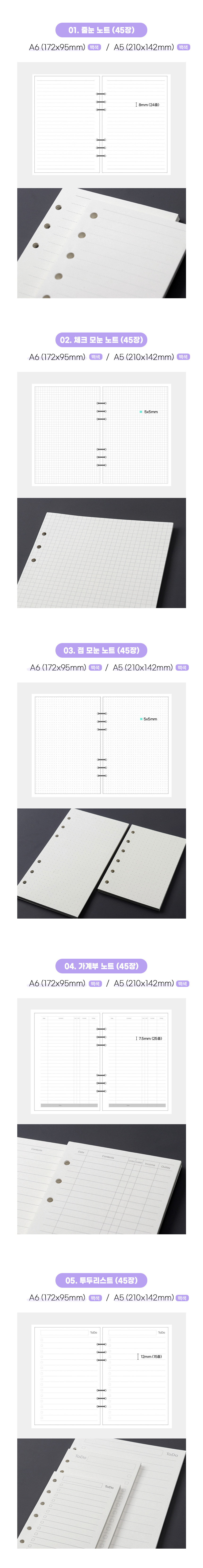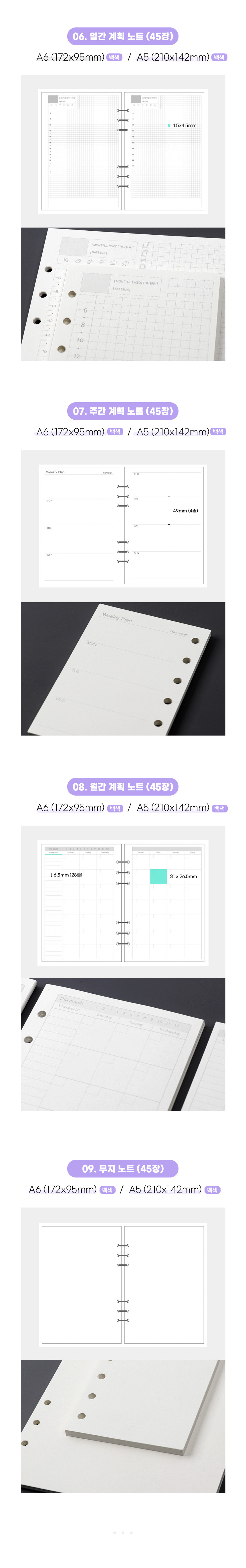 A5, A6 사이즈의 다이어리 리필 속지로