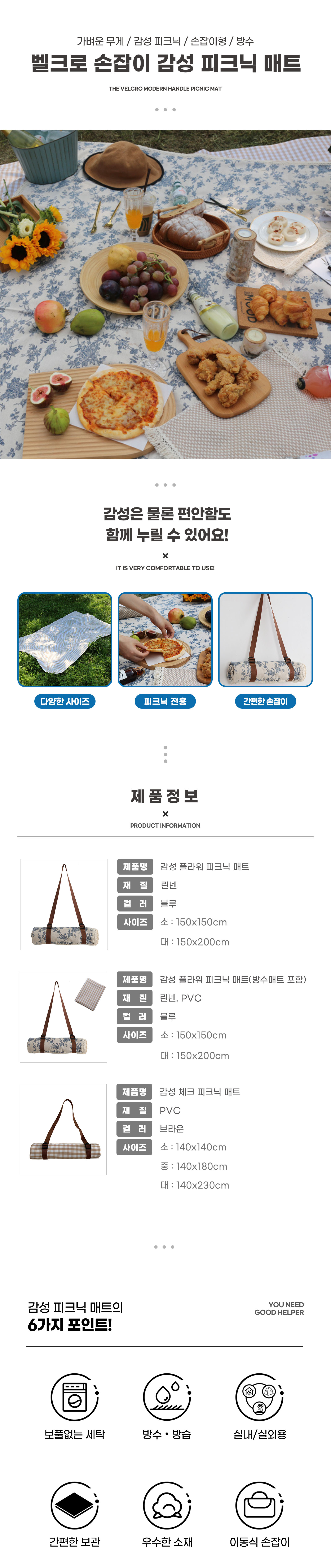 기능과 디자인까지 모두 고려한 감성 체크 피크닉 매트 :)