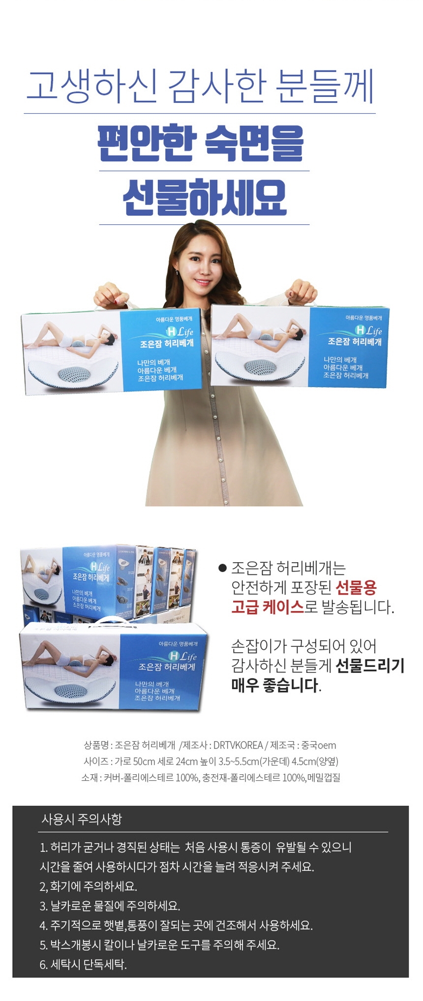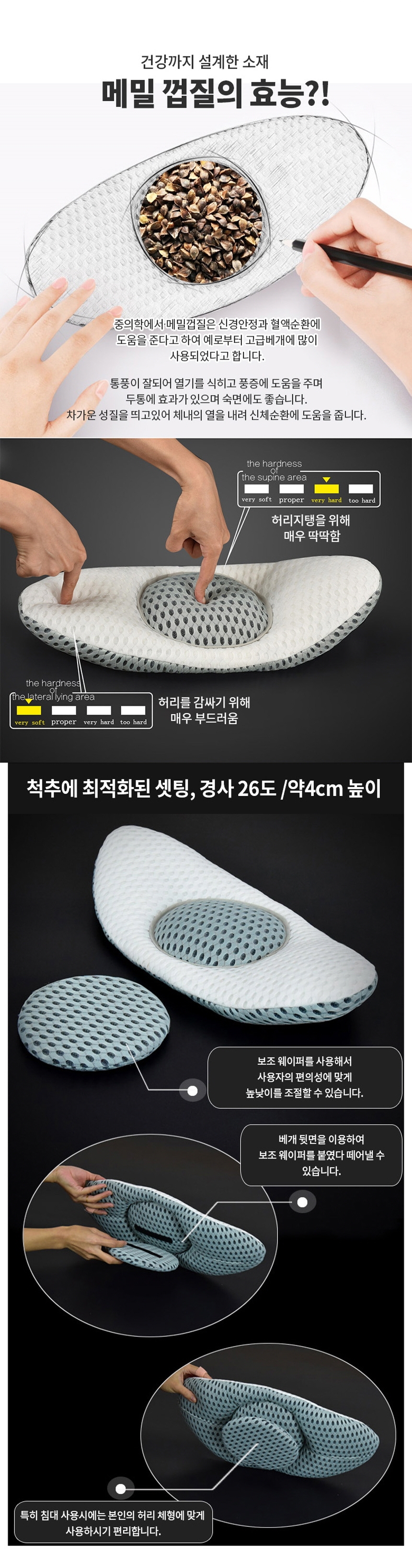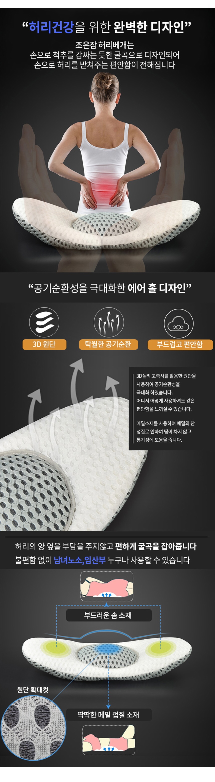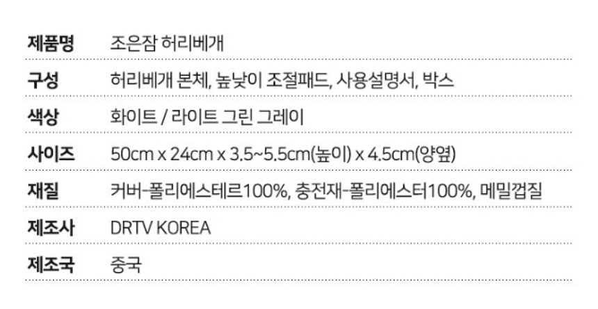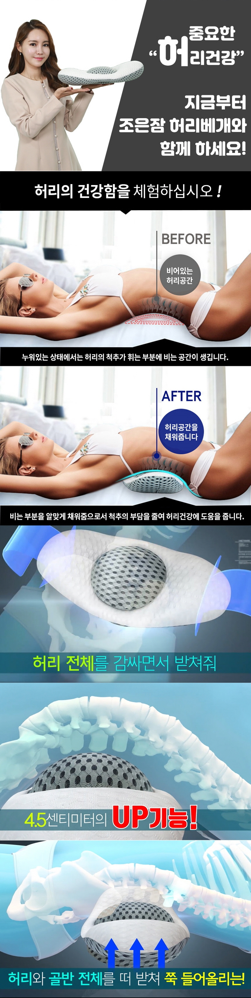 자는동안 허리를 편안하게 떠 받치고 들어올려줍니다