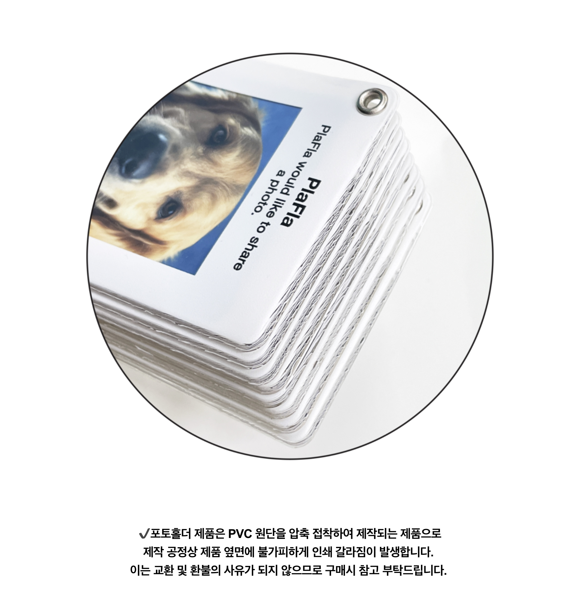 반명함판 사이즈의 사진을 넣어 사용할 수 있는 PVC 소재의 포토홀더 입니다. 사진과 카드를 함께 넣어 가벼운 카드지갑으로도 사용할 수 있습니다. 30*40mm 사진 삽입칸 1개, 신용카드 또는 55*85mm의 포토카드를 넣을 수 있는 별도 칸 1개로 구성되어 카드를 꺼내어 사용할 때 생기는 접촉으로 인한 사진의 손상을 최소화 할 수 있습니다. *연출 사진에 들어간 삽지 1매는 기본 구성품에 포함되어 있으며, 양면 인쇄 사양으로 구성되어 두 면 중 원하는 뱡향으로 넣어 사용 할 수 있습니다. |