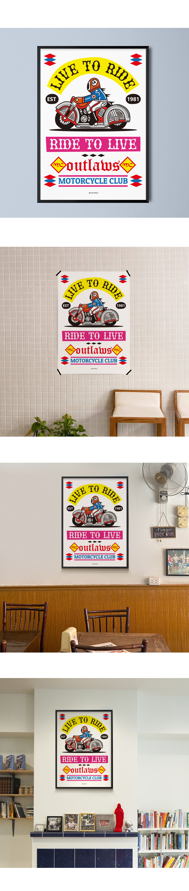 올드바이커들의 모임을 키치한 느낌으로 재해석한 그래픽 디자인.