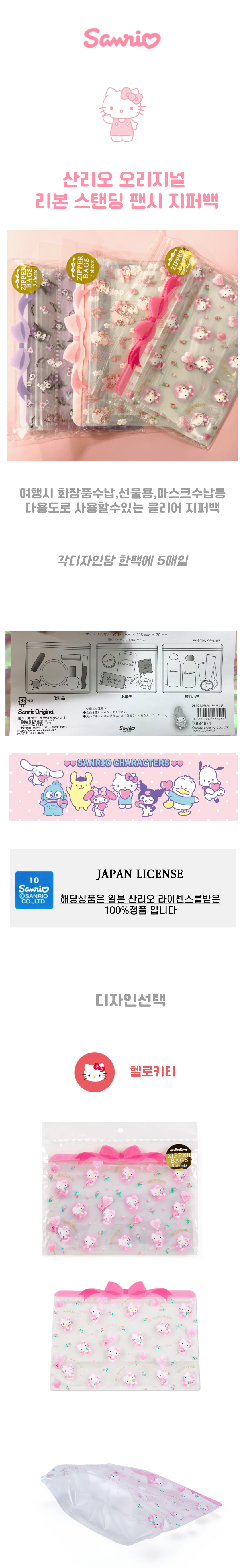 인기캐릭터 산리오의 리본 스탠딩 지퍼백 파우치