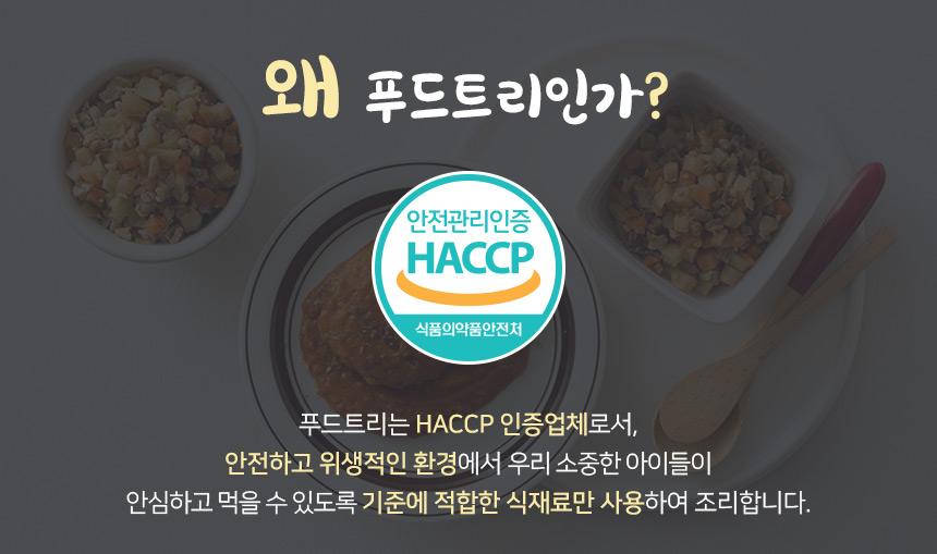 ? 푸드트리는 대한민국 최고의 영유아 식품전문가들이 함께 만나 홈메이드 스타일의 영유아 반찬 전문회사입니다 ? 과학적으로 식생활 패턴을 연구하여 아이들이 밥을 잘 먹을 수 있게 식습관 길잡이 역할을 할 수 있도록 노력하고 있습니다 ? 다양한 컨텐츠와 바른 먹거리로 부모님들의 걱정거리를 도와 드릴 수 있도록 최선을 다하고 있습니다 ? 믿고 먹이셔도 되십니다 ?