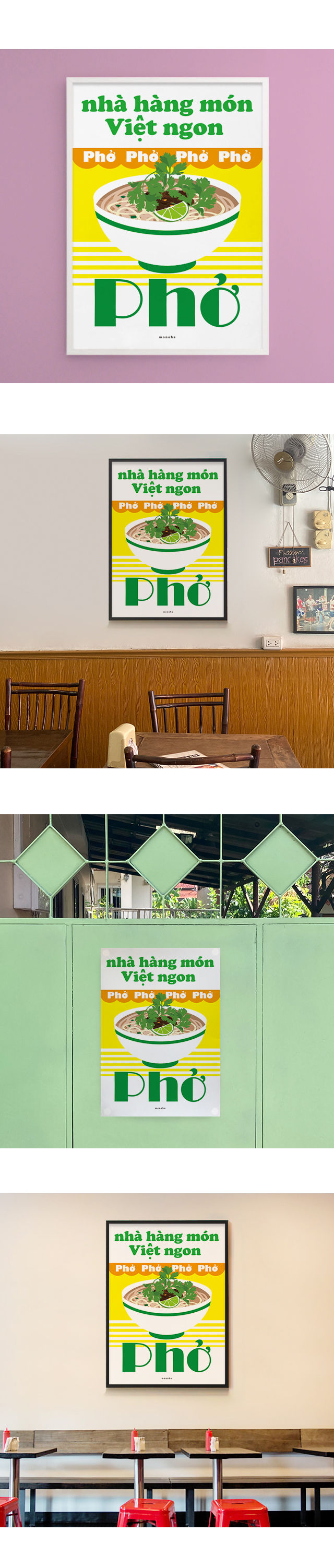 본고장 쌀국수 느낌이 낭낭한 베트남 일러스트 포스터입니다.