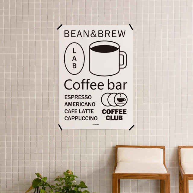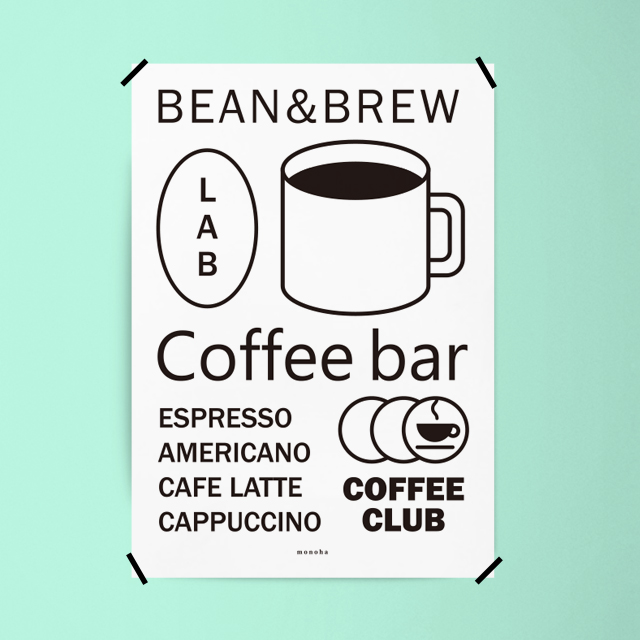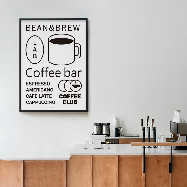 심플한 톤앤매너의 커피바 일러스트 포스터입니다.