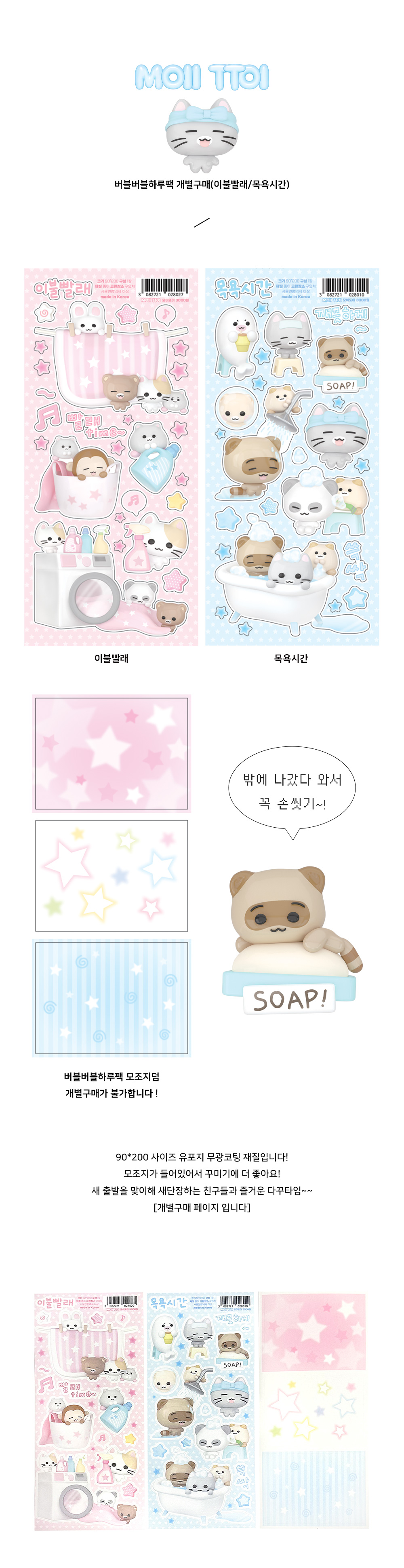 90*200 무광스티커2장, 모조지스티커 1장 구성입니다