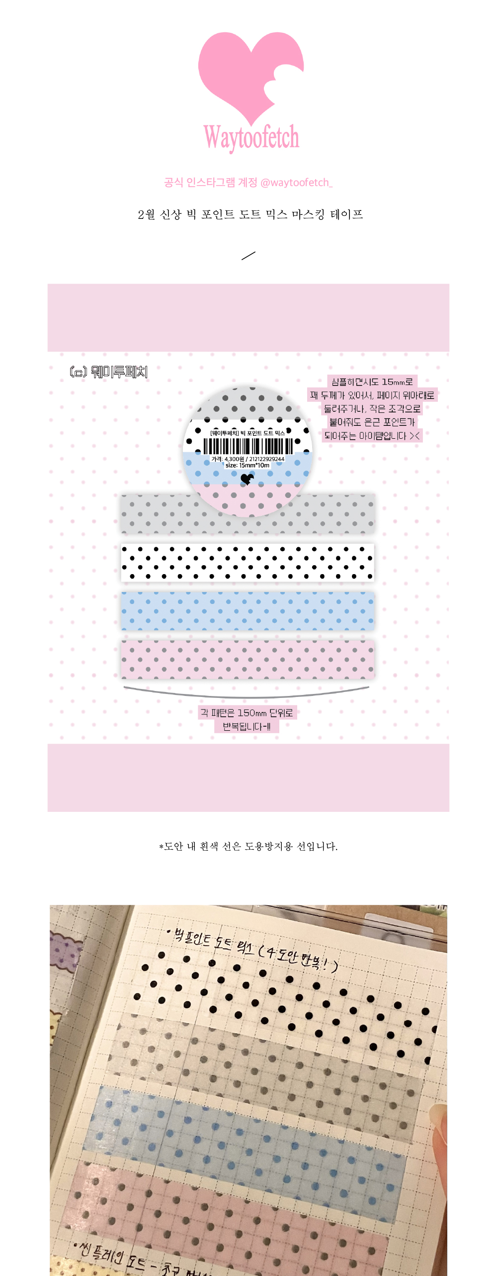 4가지의 도안이 각각 150mm 단위로 반복되는 도트 마테입니다! 제품 하나로 4개의 마테 디자인을 품을 수 있는 엄청난 가성비템이에요!