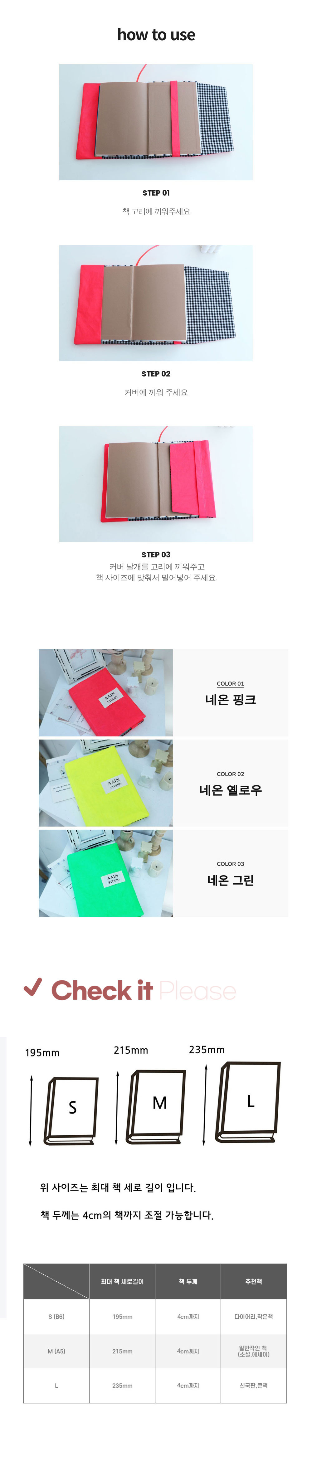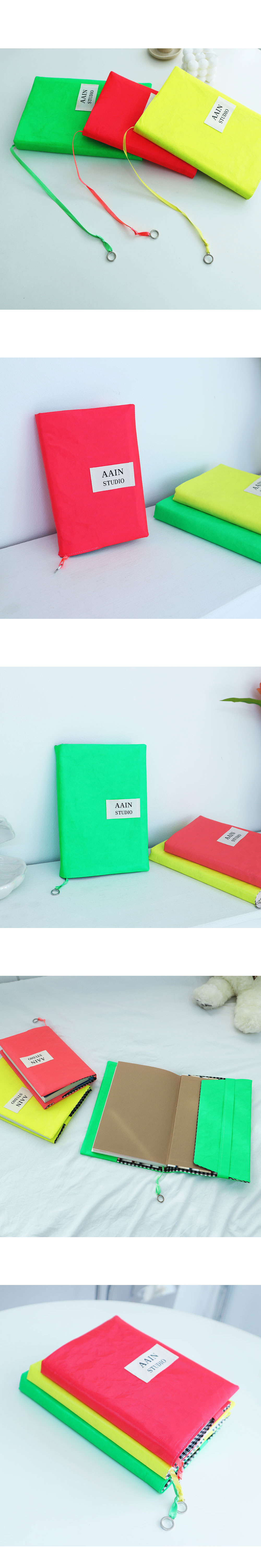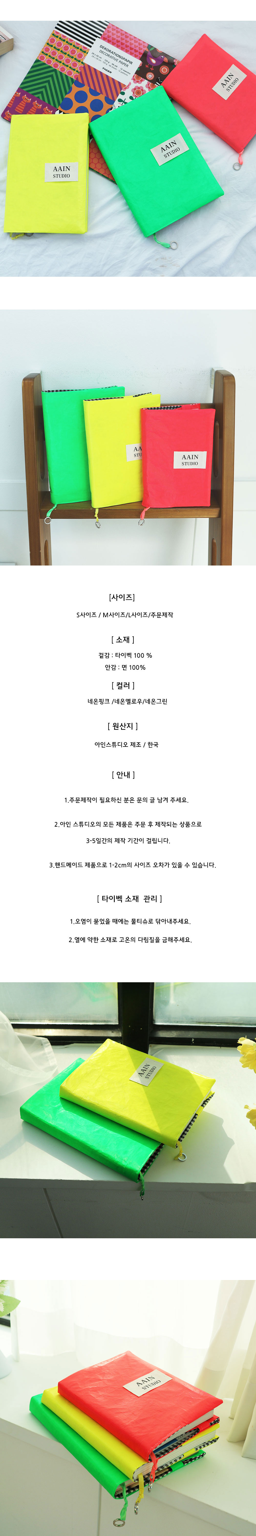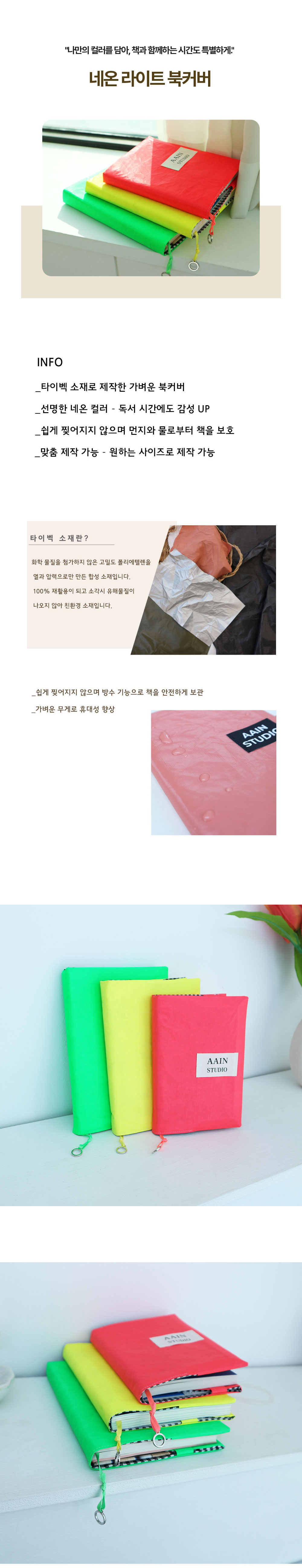 네온 컬러의 타이벡 소재로 제작한 가벼운 북커버입니다.