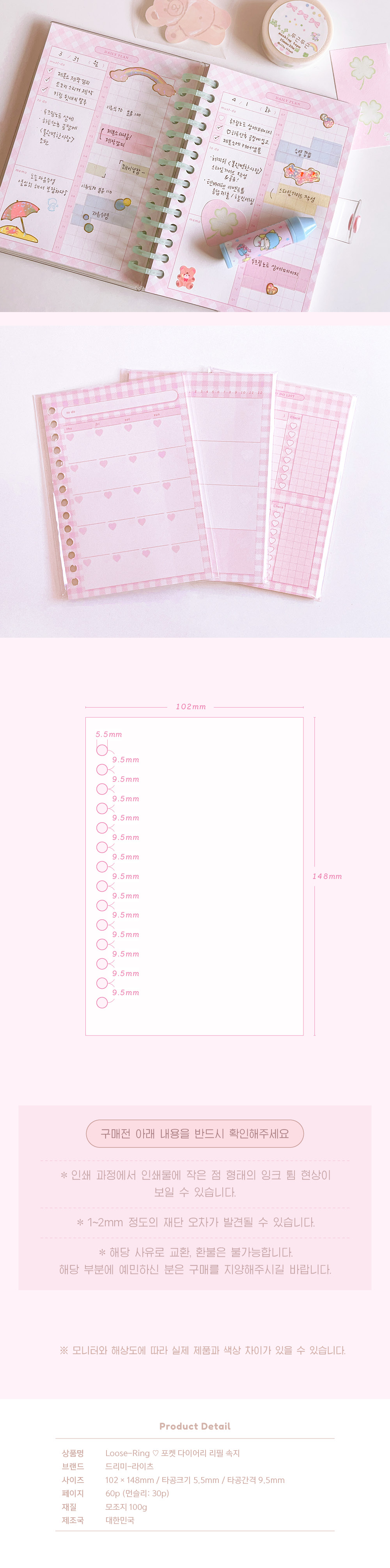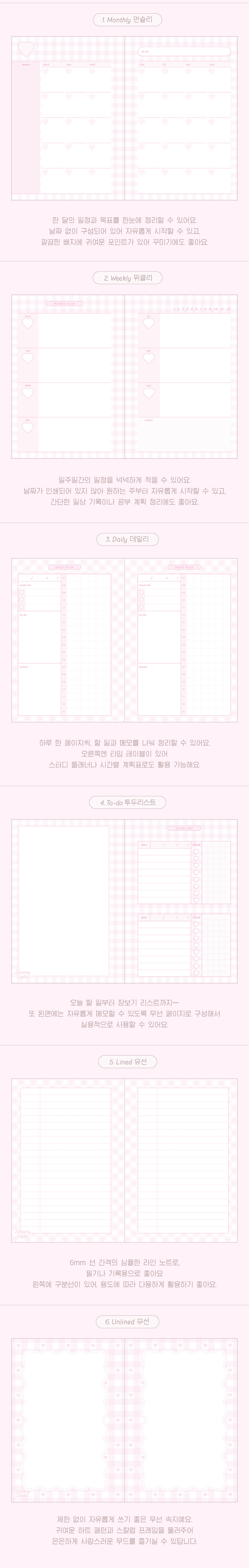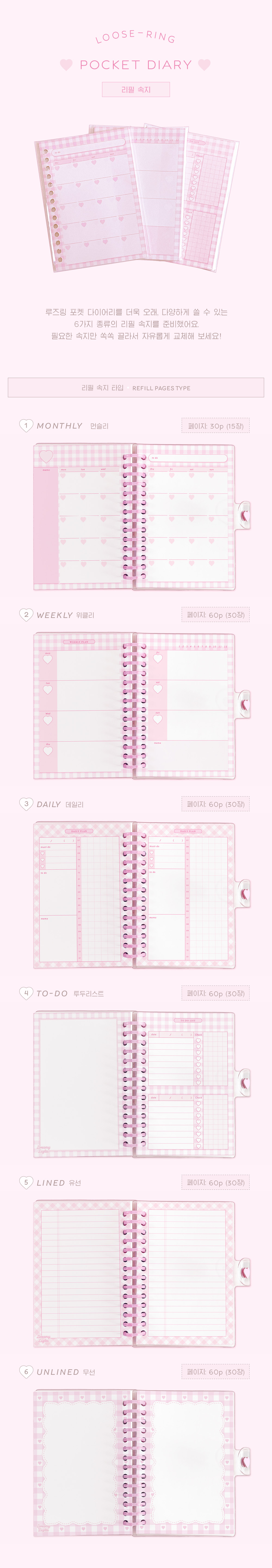 귀여운 포인트를 가득 담으면서도 심플한 포켓 다이어리의 리필 속지 입니다 ♡