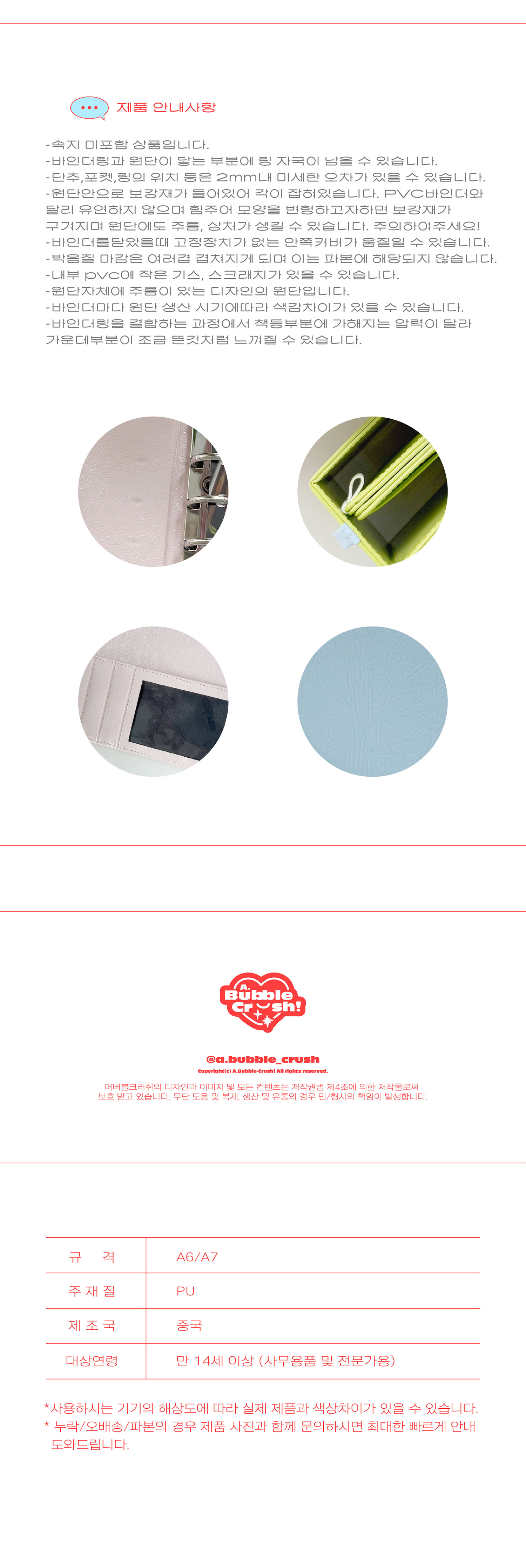 *상세페이지는 바인더 단독제품으로 추후 수정예정입니다. 가장하단의 주의사항만 참고 부탁드립니다.