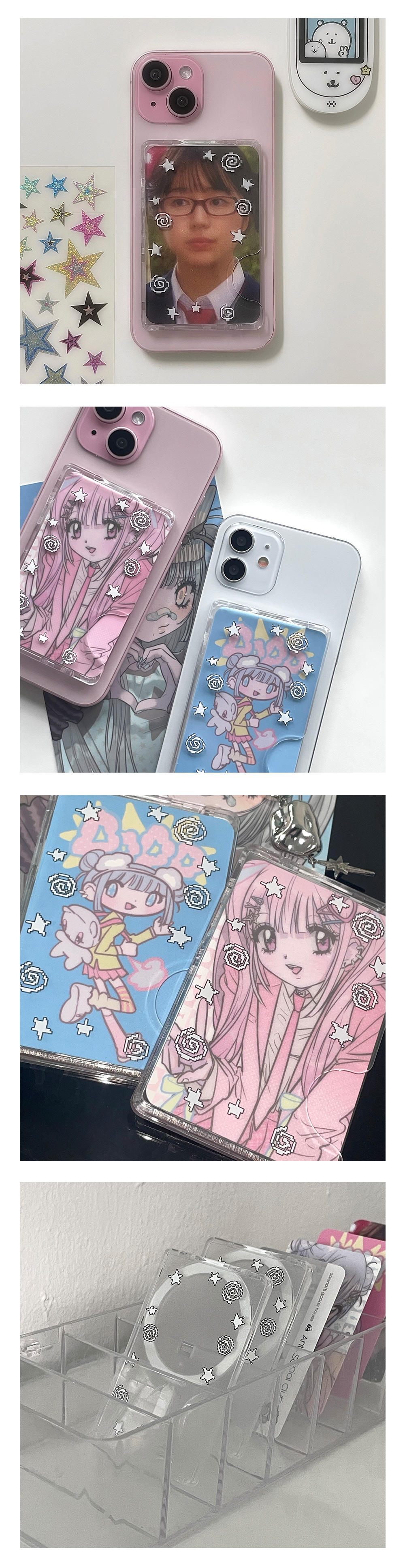 투명한 케이스에 귀여운 느낌의 픽셀 그래픽으로, 카드 뿐만 아니라 포토카드를 넣어 꾸밀 수도 있습니다.