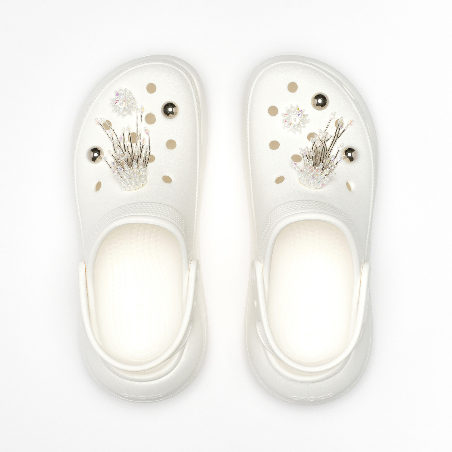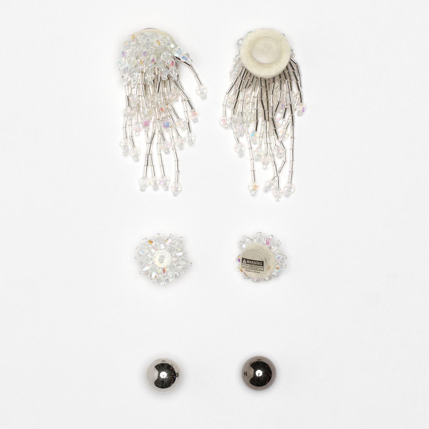 총 4개의 실버컬러 핸드메이드 비즈 참으로 총 구성된 핍 세트입니다. 드롭형태의 비즈, 라운드 실버 메탈 장식, 미니 사이즈 비즈로 신발의 무드를 바꿔줄 수 있습니다.