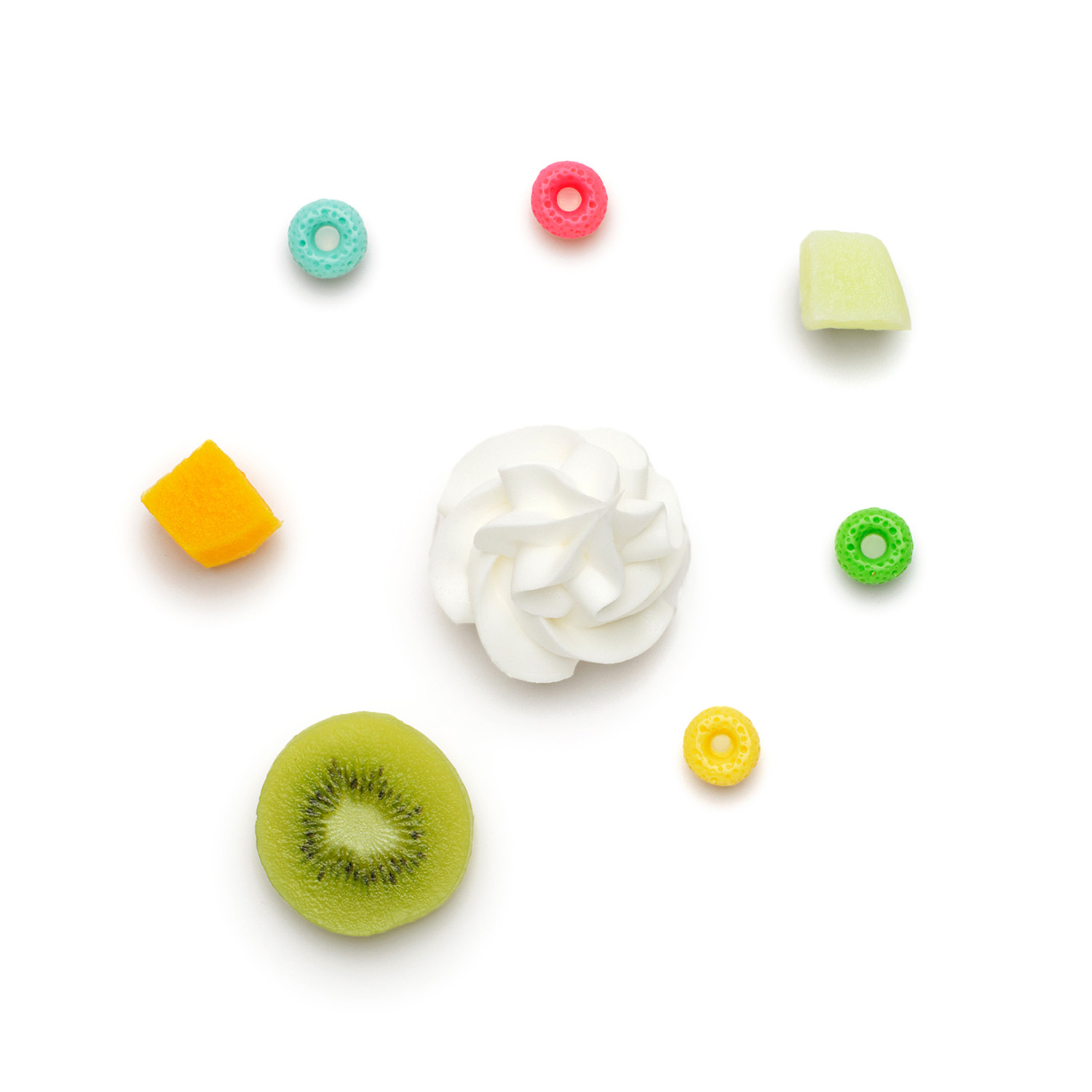 요거트 아이스크림과 키위, 망고, 메론, 후르츠링까지 총 8개의 핍으로 구성된 세트입니다. 알록달록한 조합으로 룩에 포인트를 더해보세요.